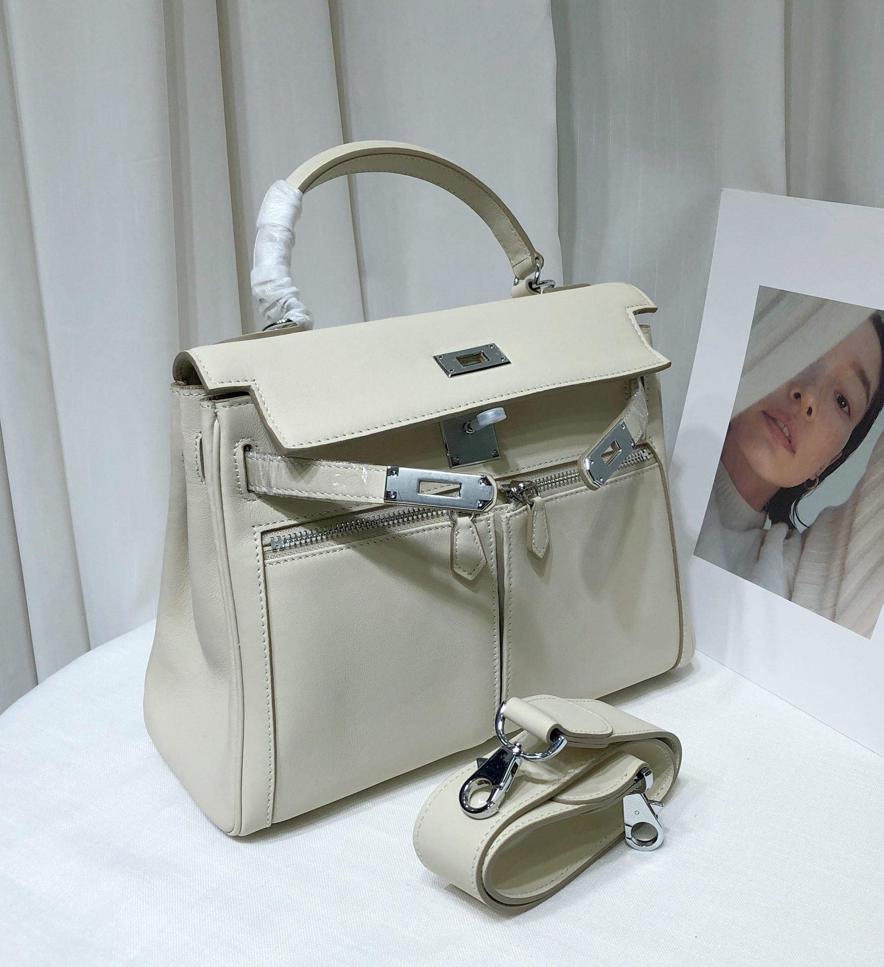2025 Новая сумка Lakis с широким плечевым ремнем из коровьей кожи первого слоя, сумка с двойным карманом, кожаная женская сумка, ручная сумка, сумка через плечо 28cm белый