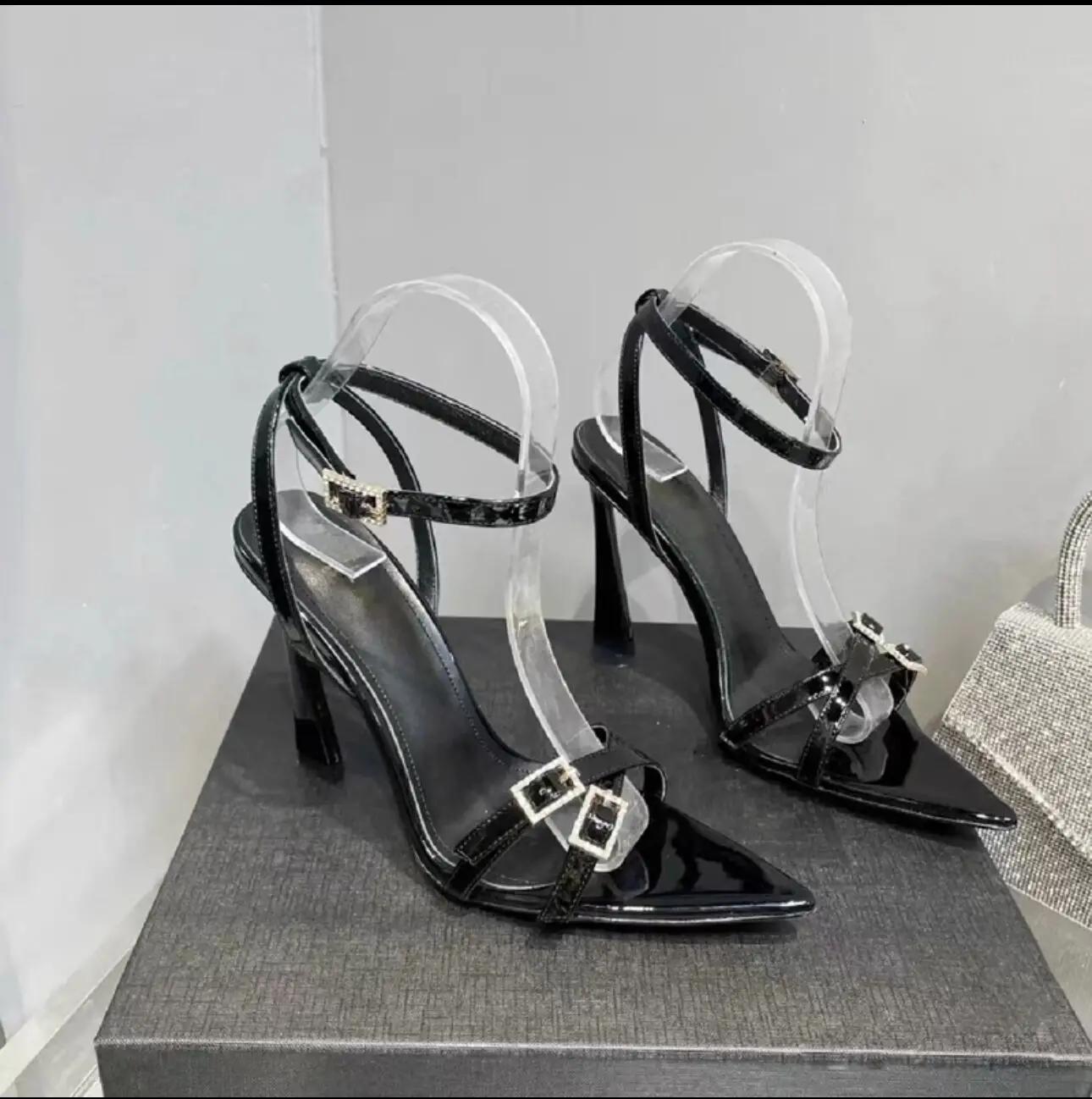 2025 Новые женские босоножки на высоком каблуке Летние туфли для платья на высоком каблуке Ремешок Роскошные слинги Женские Сексуальные Свадебные Сандалии 40 чёрный