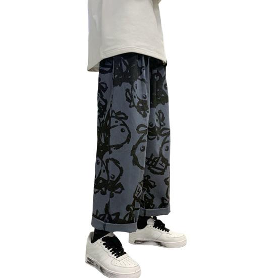 2025 Новые модные мужские брюки, модные повседневные брюки на шнурке, ретро-прямые широкие повседневные брюки L чёрный