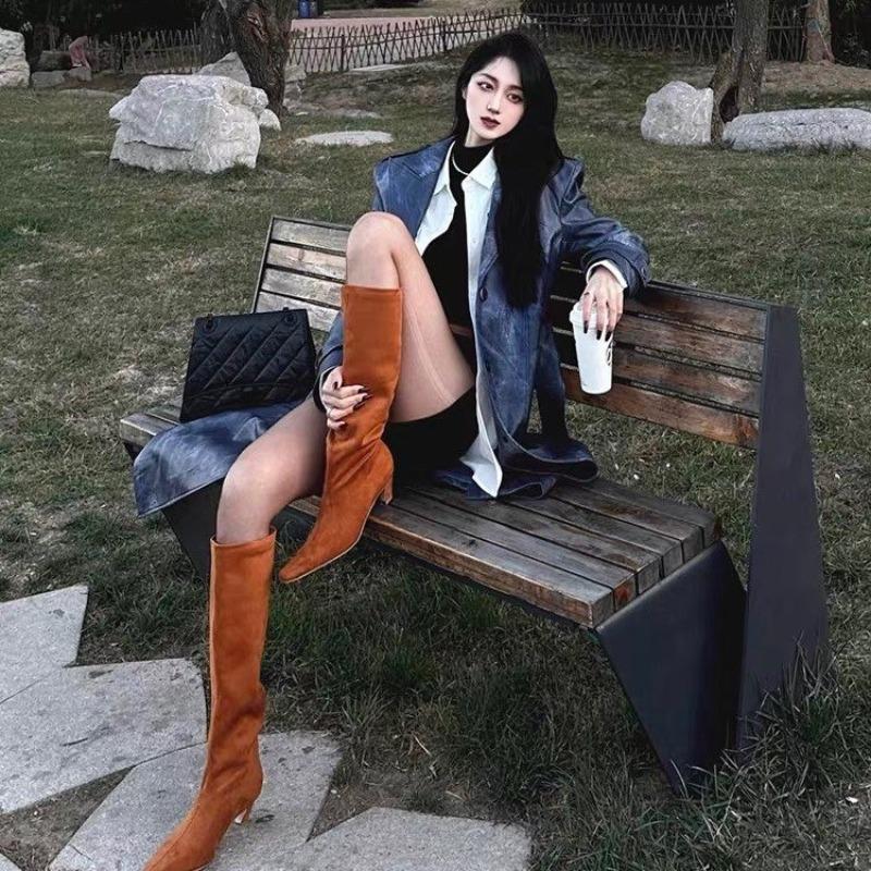 2025 Новые сетчатые неоново-зеленые босоножки-ботильоны Женские сексуальные ботфорты выше колена Остроносые туфли на высоком каблуке Вечерняя обувь Женские ботфорты до бедра 40 оранжевый