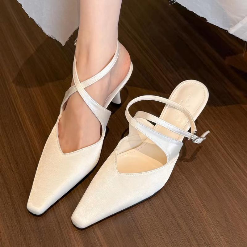 2025 Новый бренд Женская модная и элегантная обувь-шлепанцы Модные туфли с острым носком для леди Элегантная обувь Тонкий низкий каблук Уличная нарядная 40 белый