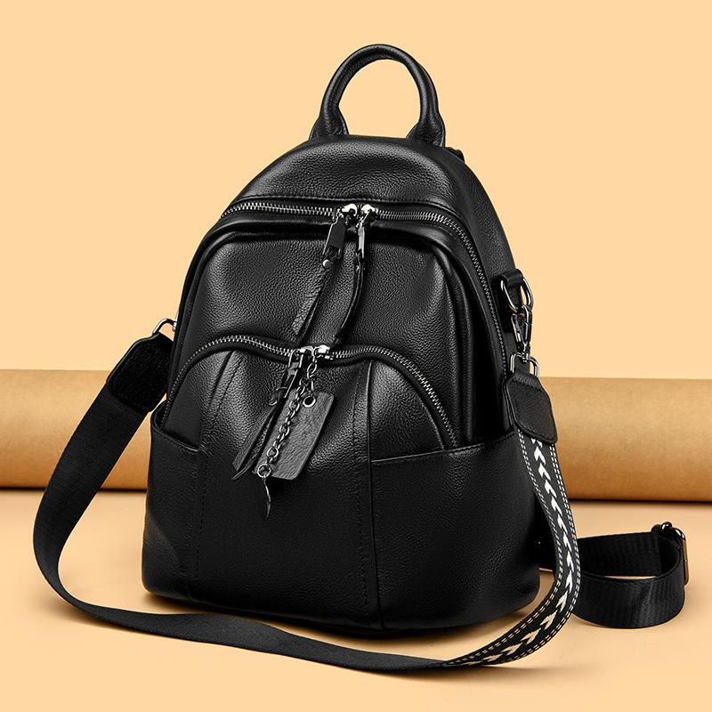 2025 Новый женский рюкзак Модный универсальный из первого слоя коровьей кожи Большой вместимости Полностью кожаная сумка через плечо Женская сумка из натуральной кожи чёрный