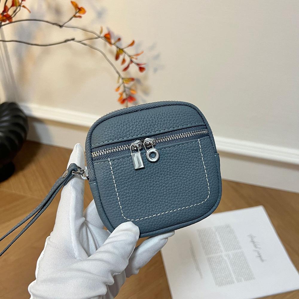 2025 Новый кошелек для монет из натуральной кожи с брелками, кошелек для ключей на двусторонней молнии, женский кошелек из первого слоя коровьей кожи для ключей, помад, наушников светло-синий