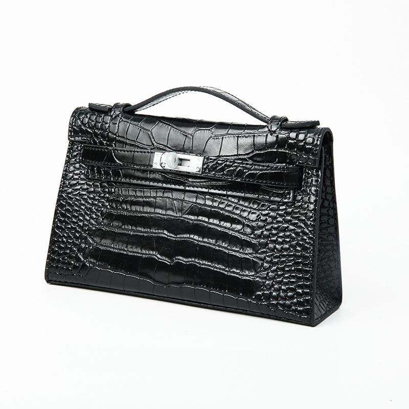 2025 Новый стиль Ручная вечерняя сумка Кожаная сумка на цепочке из шнурка Натуральная кожа Женская сумка Обманывающая вас Одинарная кожаная сумочка Сумка из овчины 22x7x14cm серебряный/чёрный