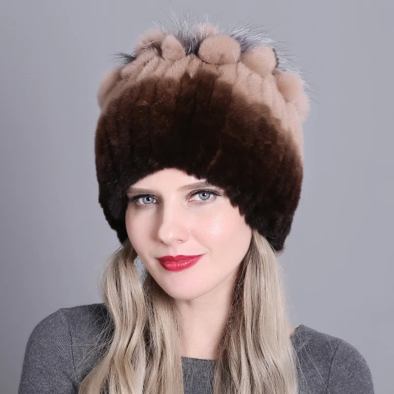 2025 Новый стиль, роскошная женская шапка из натурального меха, шапка из настоящего натурального кролика рекса, хорошая эластичная вязаная зимняя теплая шапка из меха кролика рекс