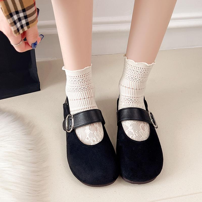 2025 Осень Новые Женские Кожаные Туфли Мода Корейский Стиль Мягкая Подошва Противоскользящие Универсальные Туфли-Принцессы Балетки Одинарные Туфли 35 чёрный
