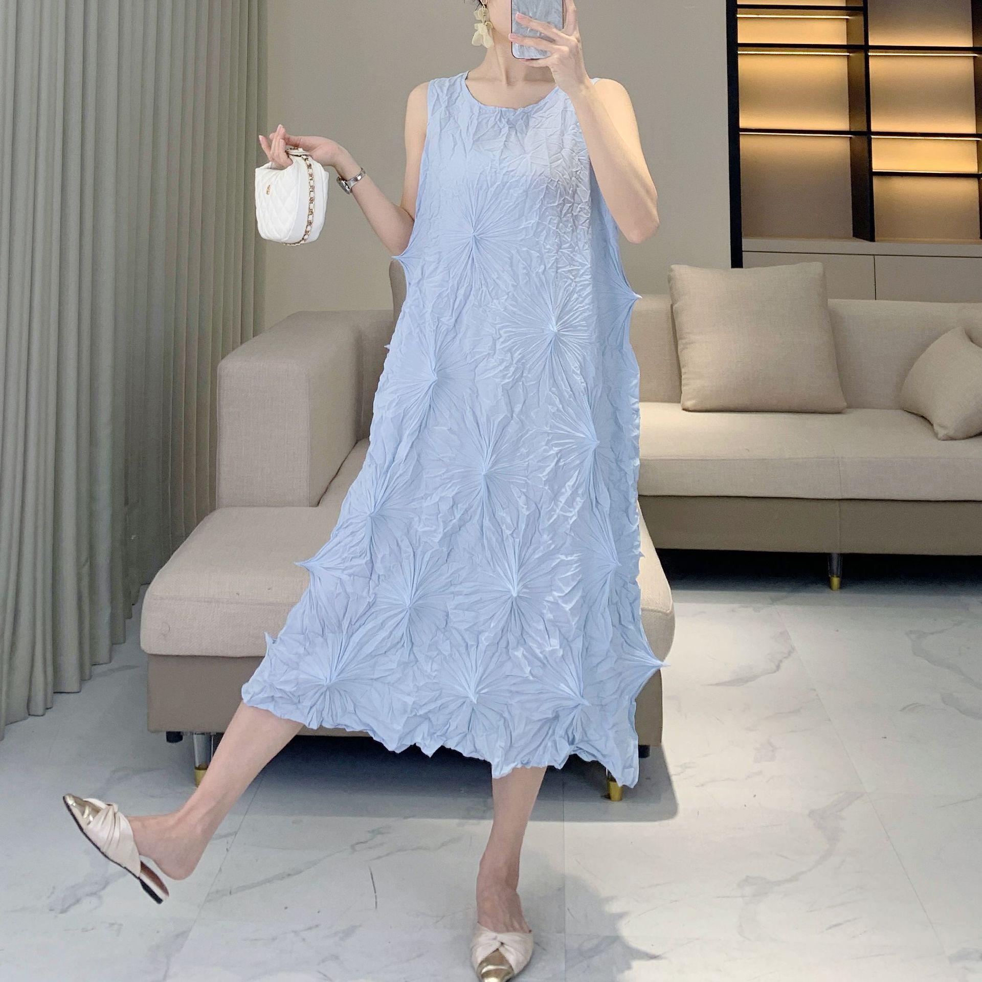 2025 Платье без рукавов плиссе в стиле Мияке - Женская летняя мода One Size [45-75 kg] темно-синий