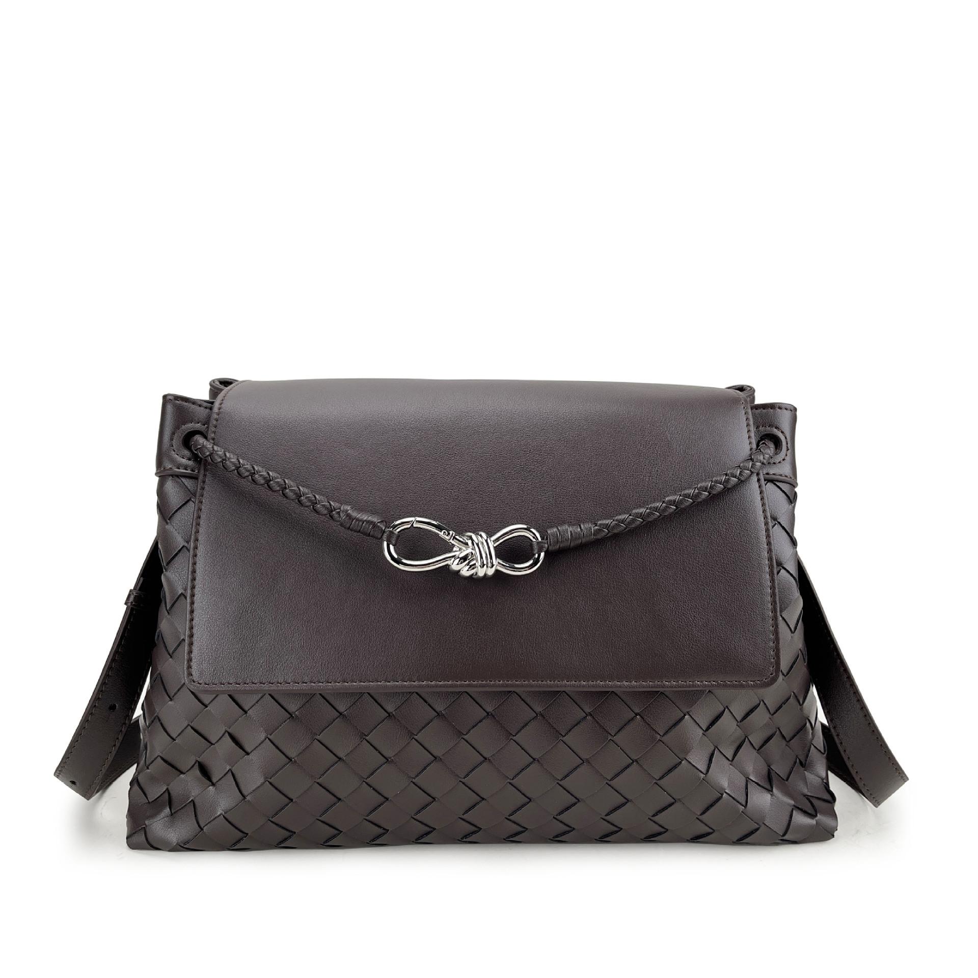2025 Плетеная из коровьей кожи Натуральная кожа В сочетании с серебряной пряжкой-бабочкой Большая вместимость Для поездок на работу Универсальная Сумка-тоут на одно плечо Подмышечная 37x24x16cm