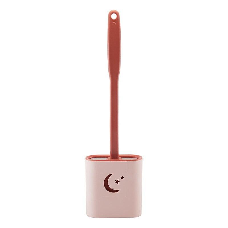 2025 Силиконовая туалетная щетка с держателем, плоская головка, гибкая мягкая щетина, щетка для ванной комнаты, очистка щелей moon розовый