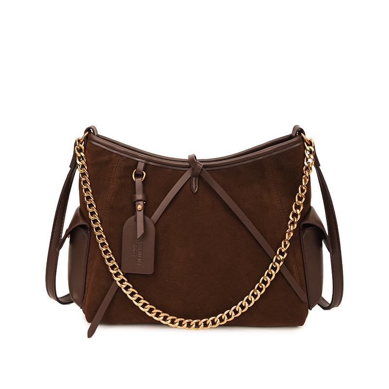 2025 Сумка-тоут из замши большой вместимости на цепочке - Высококачественная, износостойкая сумка через плечо коричневый
