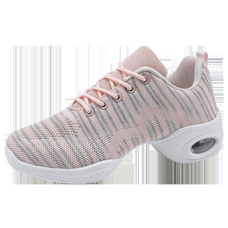 2025 Танцевальная обувь Четыре сезона Сетка Мягкая подошва Джазовая обувь Средний каблук Кроссовки Обувь для прыжков и бега Взрослая обувь для квадратного танца 35 розовый