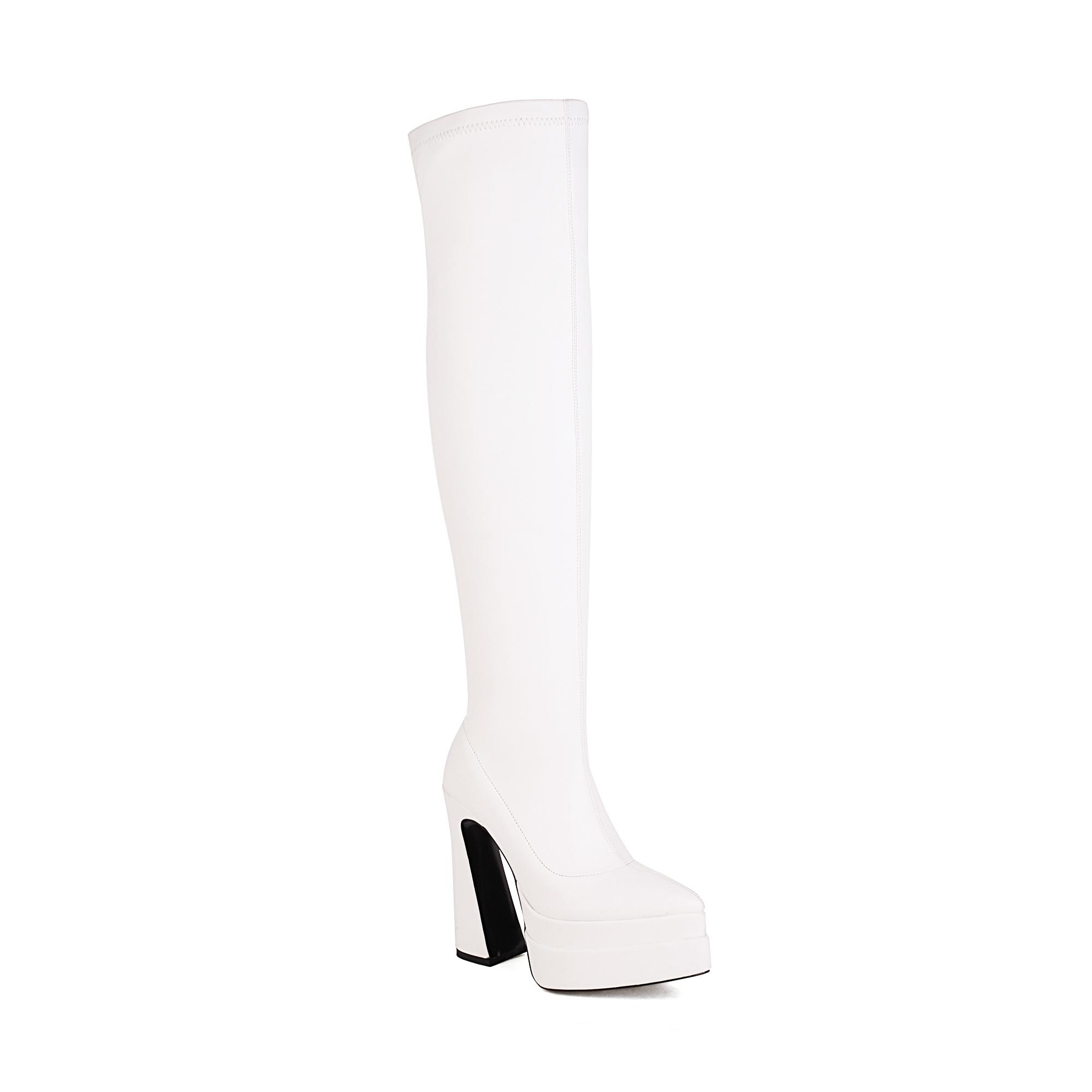 2025 Ультра-высокий вырез на каблуке Остроносые Сапоги выше колена на трехслойной платформе Женские Сексуальные Облегающие Длинные Сапоги на сетчатой подкладке 37 белый
