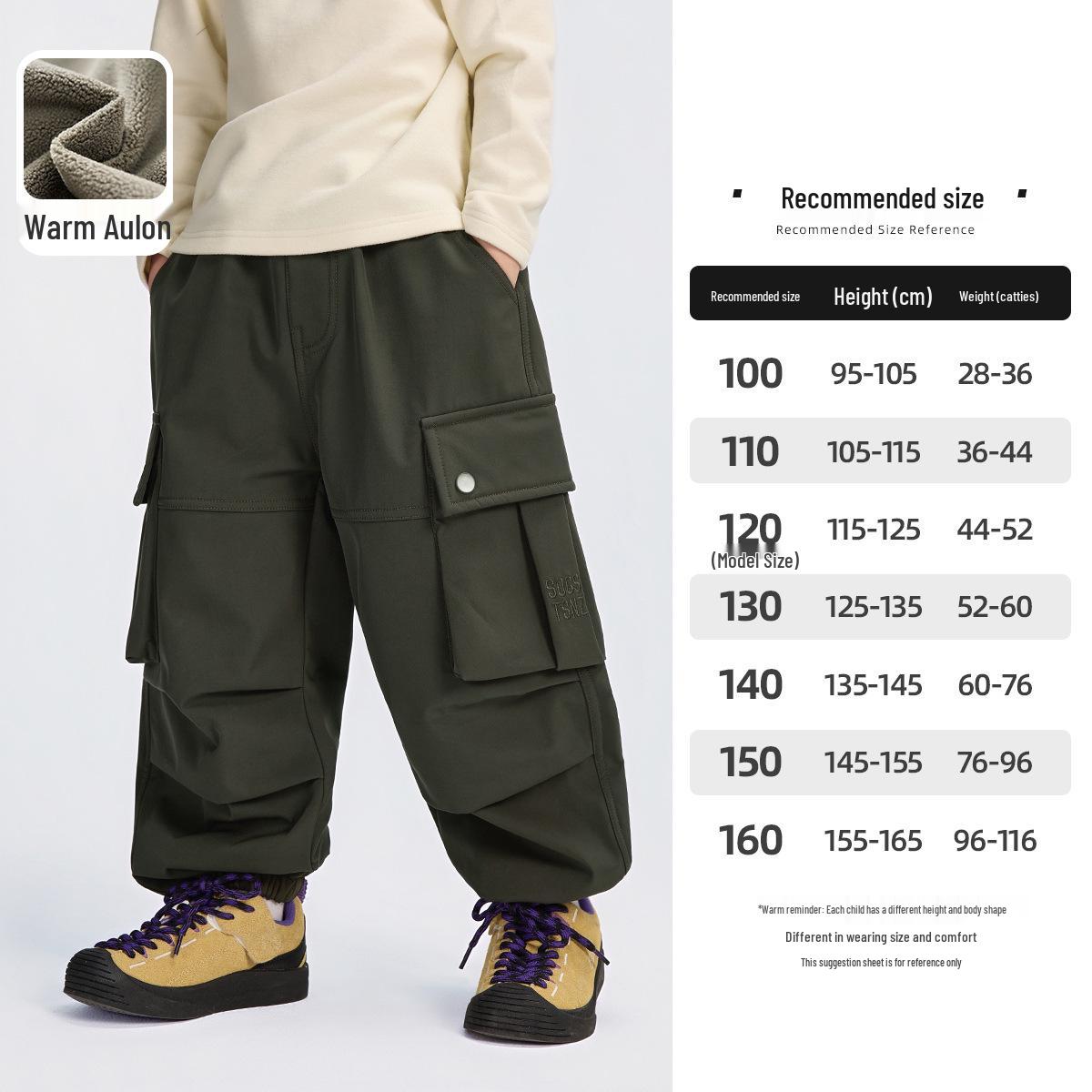 2025 Флисовые брюки-карго для мальчиков в стиле сказки: Осенне-зимний стиль для детей среднего и старшего возраста 140 cm темно-зеленого