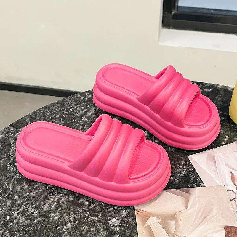 2025 Ярко-розовые тапочки на толстой платформе, женские летние босоножки на толстой танкетке, нескользящие шлепанцы для улицы, женские 40-41