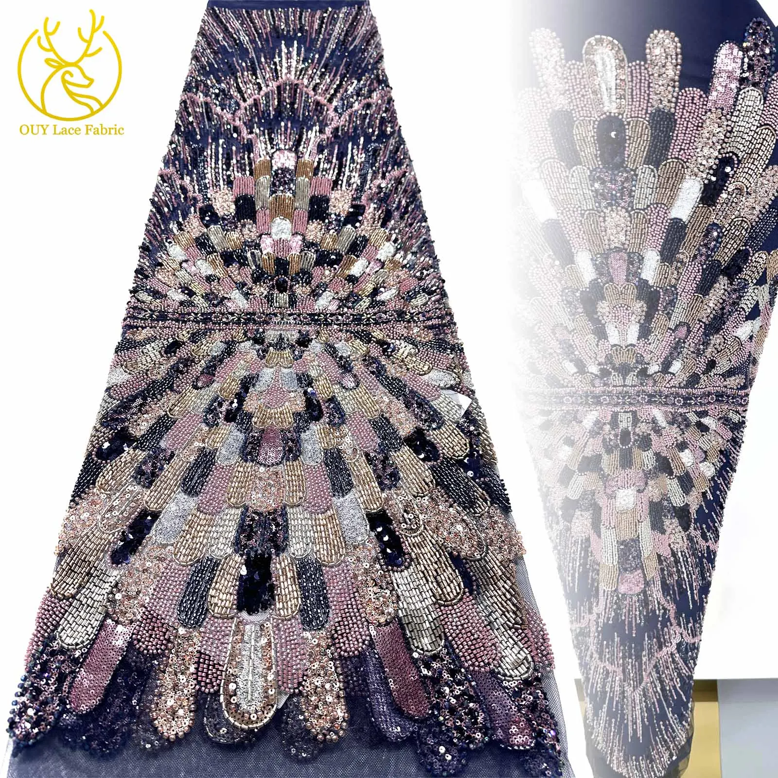 2025 африканская сетчатая кружевная ткань ручной работы с тяжелыми бисером, 5 ярдов, роскошная французская кружевная ткань с блестками для шитья женских праздничных платьев