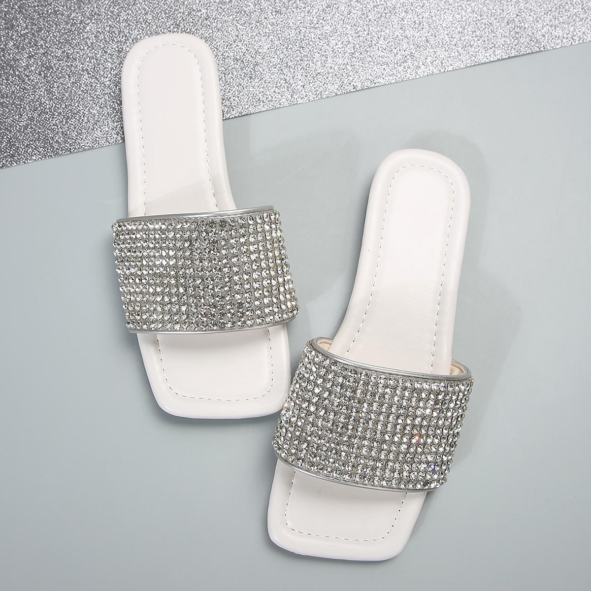 2025 весна и лето новые женские тапочки со стразами на плоской подошве, один размер, сандалии большого размера женские тапочки 43 белый