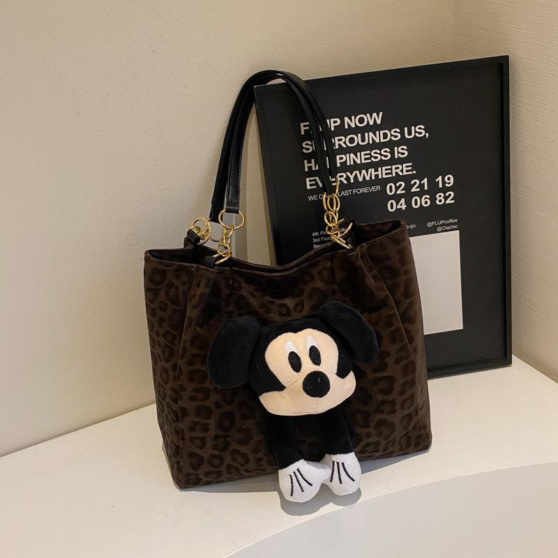 2025 весна новая популярная сумка-тоут Mickey большой вместимости женская личность повседневная леопардовый принт ленивая сумка через плечо для поездок на работу темный кофе