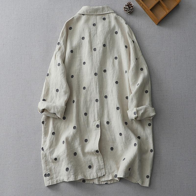 2025 весна-осень женская льняная куртка в горошек с длинными рукавами свободный костюм средней и длинной длины с тонким тренчем M