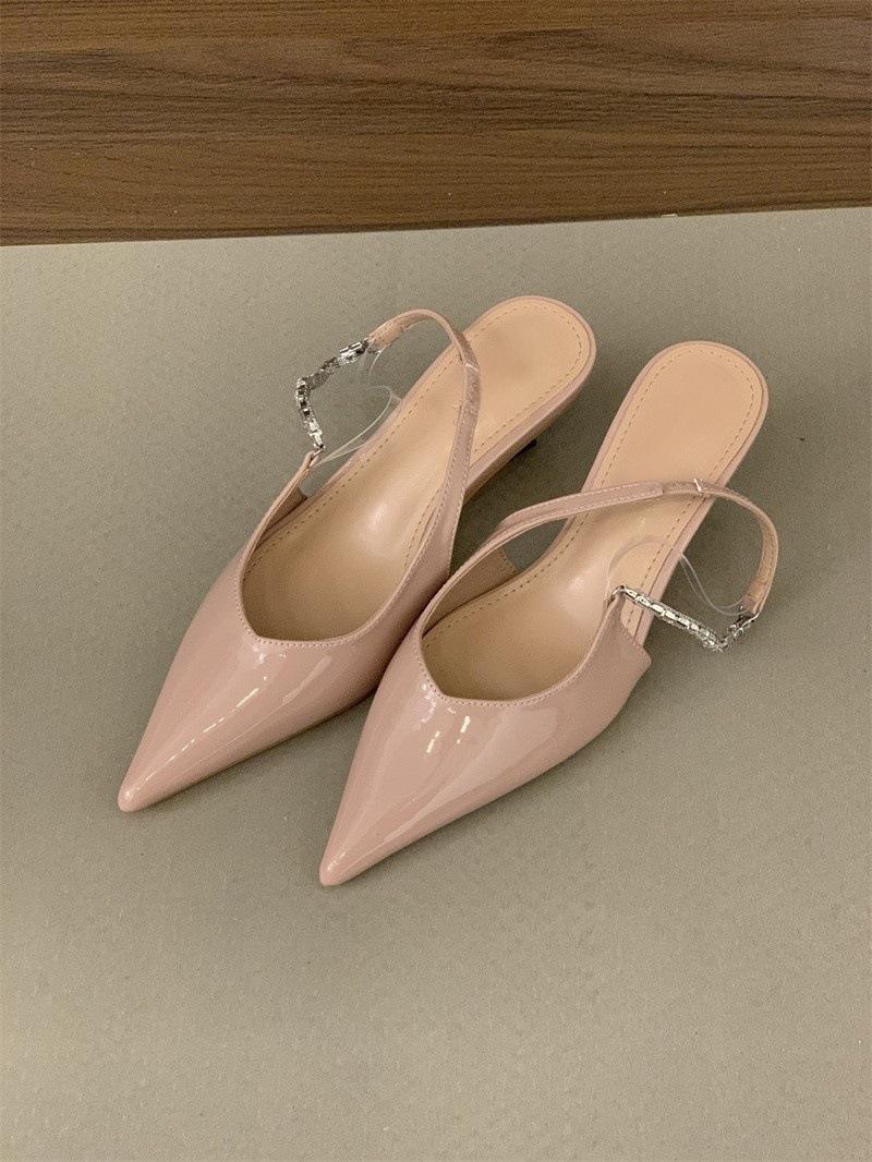 2025 весна и осень новая модная цепочка острый носок босоножки на высоком каблуке женские черные стразы тонкий каблук серебристые с юбкой туфли 35