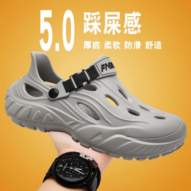 2025 внешняя торговля большой размер дырочные туфли мужские летние уличные пляжные туфли нескользящие ЭВА сумка голова сандалии дышащие туфли для ходьбы по воде 45 серый