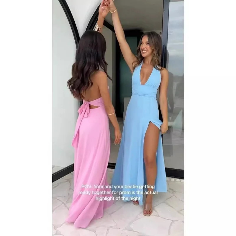 2025 горячая весна, женская мода, новый стиль, элитное элегантное однотонное платье с разрезом на шее, женское платье