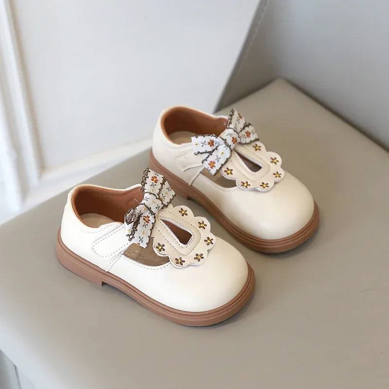 2025 г., детская кожаная обувь для девочек, новая весенняя модная мягкая нескользящая универсальная обувь принцессы в корейском стиле с шикарными вырезами