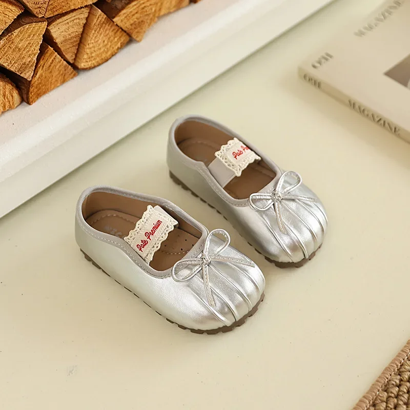 2025 г., детская кожаная обувь для девочек, осенняя новая модная нескользящая универсальная шикарная обувь принцессы в корейском стиле с мягкой подошвой