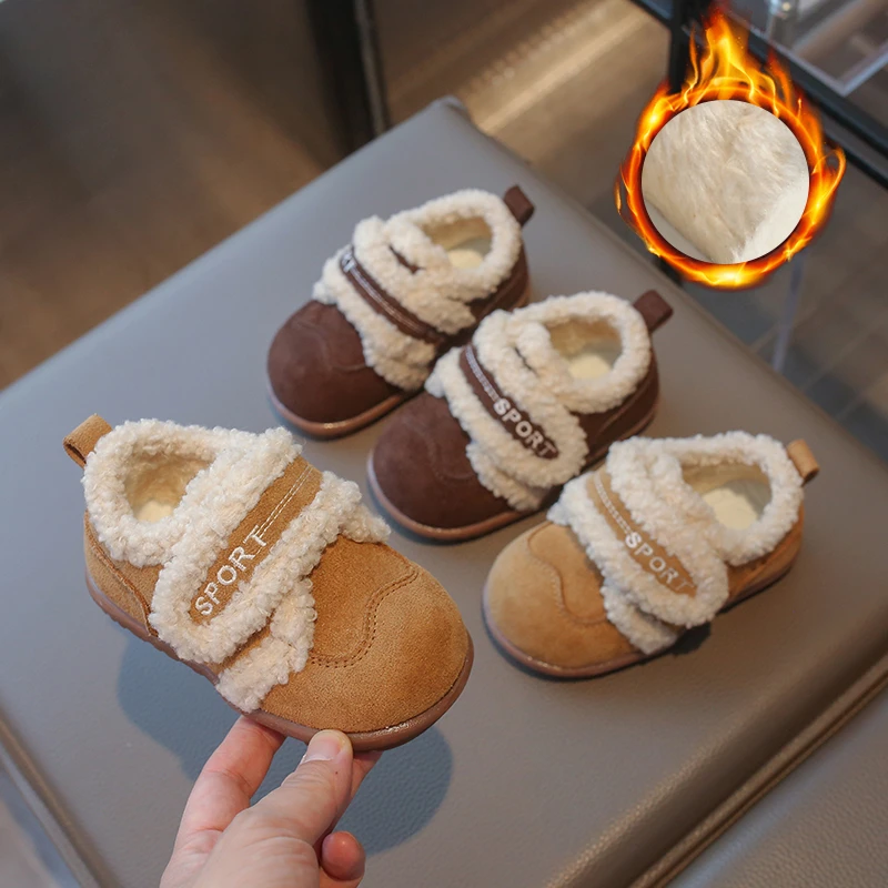 2025 г., детская хлопковая обувь, зимняя новая стильная утолщенная теплая и удобная модная повседневная обувь с мягкой подошвой для девочек в стиле ретро для мальчиков