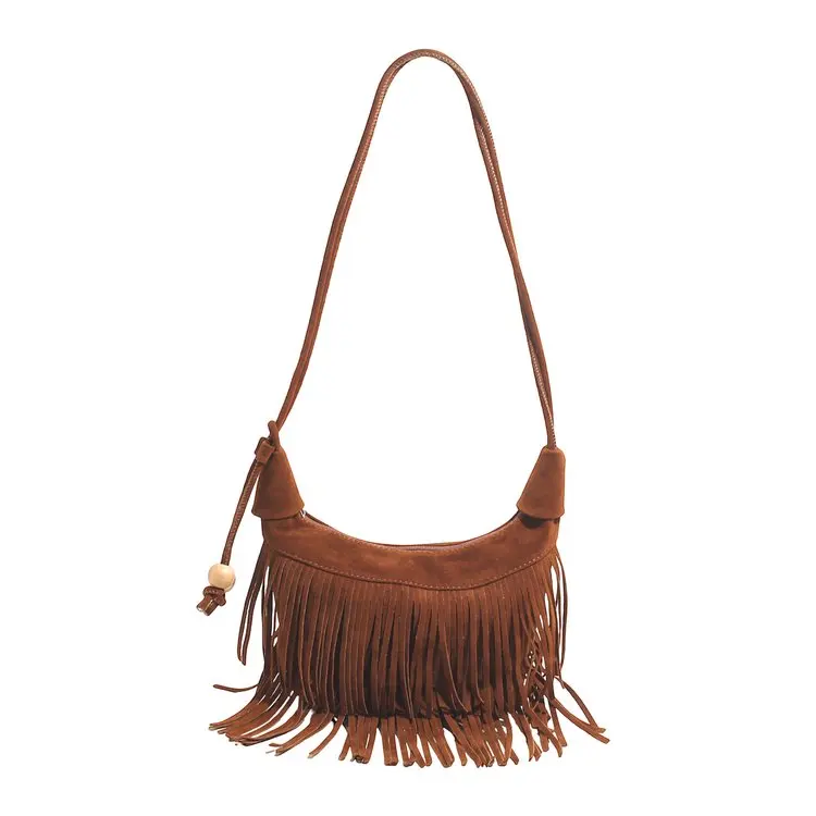 2025 женская кожаная сумка через плечо с кисточками, бархатная сумка-мессенджер в стиле ретро, модная сумка через плечо в стиле бохо, текстурированная, простая, элегантная