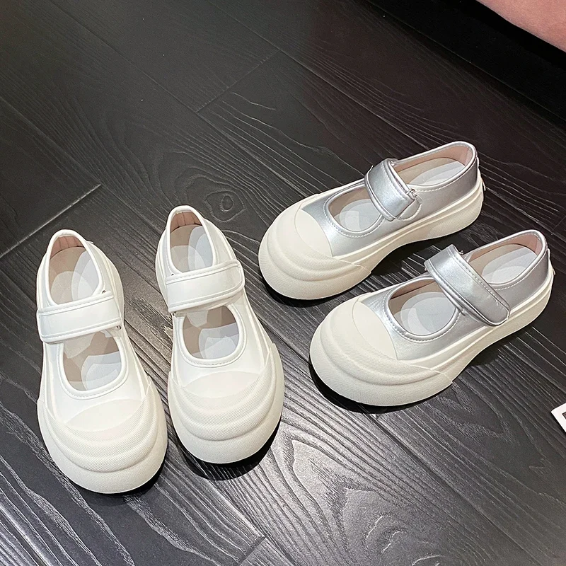 2025/женские серебряные сандалии из искусственной кожи, летняя школьная повседневная обувь с пряжкой на толстой подошве для девочек, мягкая латексная стелька, резиновая подошва