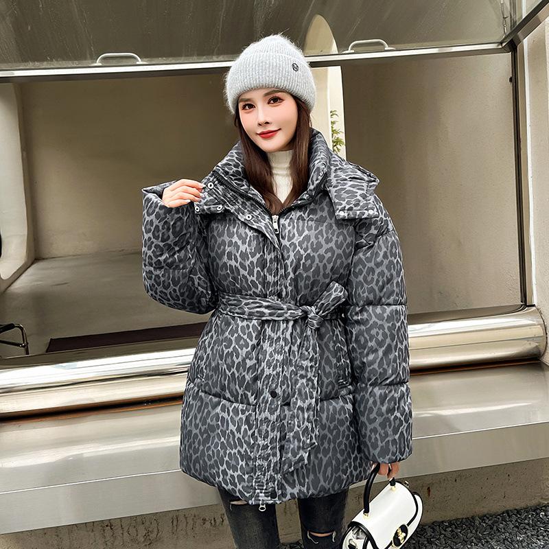 2025 зима новая женская пуховая хлопковая куртка с леопардовым принтом утолщенная свободная хлопковая куртка женская куртка XXL серый