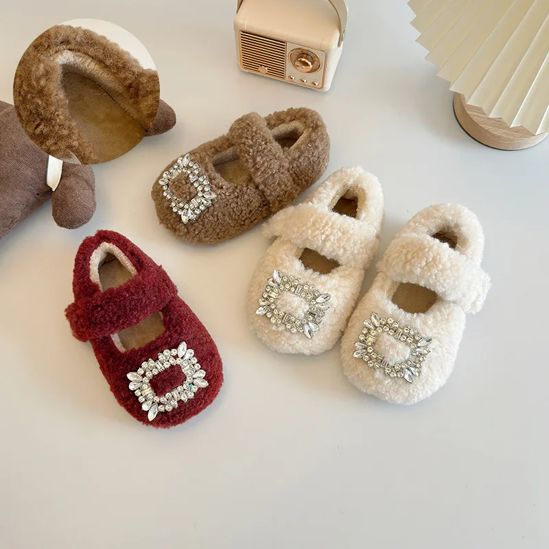 2025 зимняя новая детская хлопковая обувь для девочек, модная нескользящая универсальная плюшевая обувь принцессы в корейском стиле с мягкой подошвой