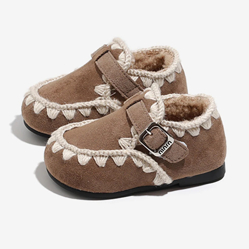 2025 зимняя хлопковая обувь для маленьких девочек, теплая прогулочная обувь на флисовой подкладке для малышей, повседневная обувь для малышей на нескользящей мягкой подошве