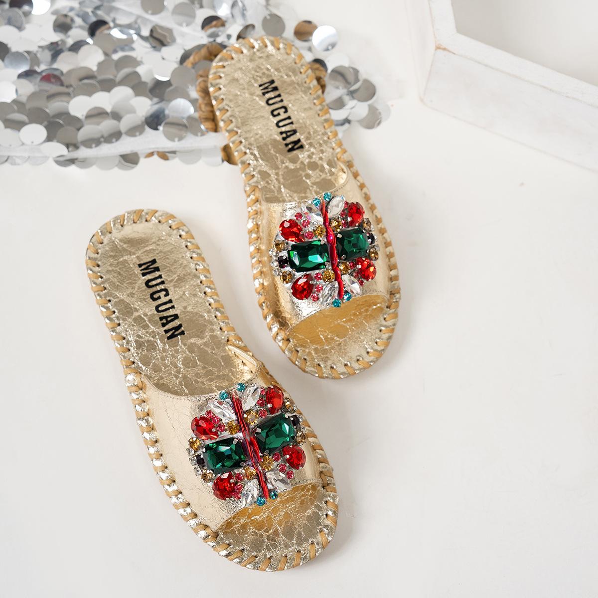 2025 летние импортные торговые большие размеры сшитые вручную пляжные классные тапочки на плоской подошве 43 ярда тапочки со стразами женские 40 золотой