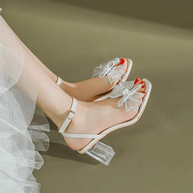 2025 летние новые босоножки на шпильках с пряжкой в одно слово, с открытым носком, на высоком каблуке, с бантом, сетка, модная женская обувь, фея 40