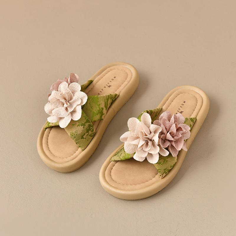 2025 летние новые сандалии на плоской подошве фея темперамент мода один педаль прохладные удобные тапочки для юбки иностранные легкие 40 зелёный