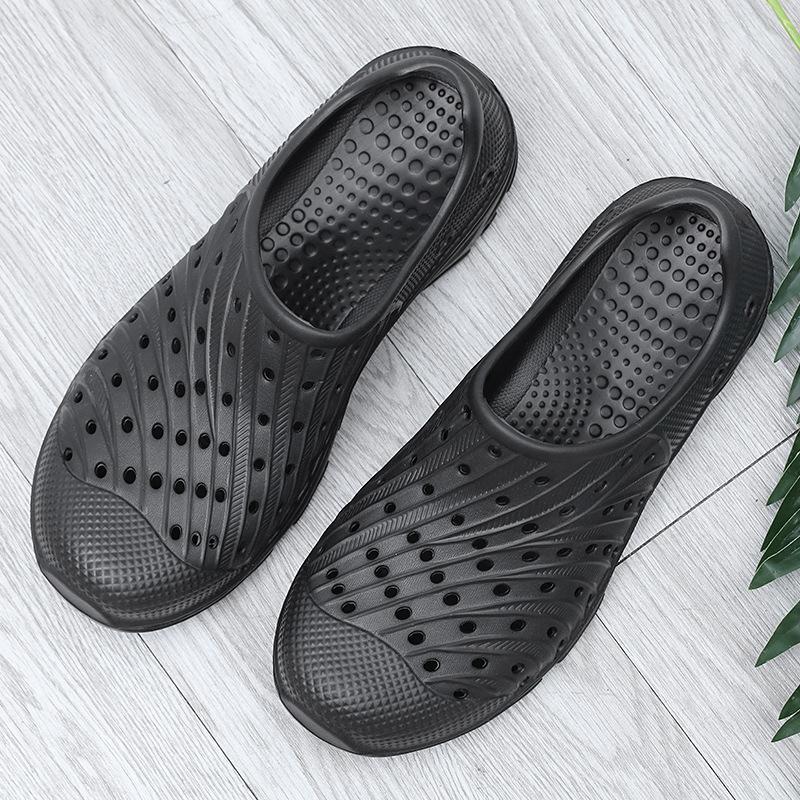 2025 летние туфли большого размера с отверстиями, мужская обувь, повседневная модная платформа, нескользящие пляжные сандалии, легкая обувь для вождения 45 чёрный