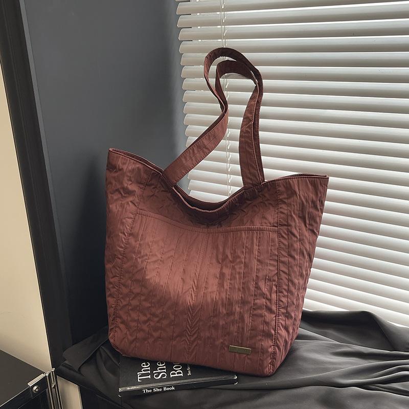 2025 лето кроссбоди мода простая наплечная сумка однотонная литературный стиль сумка-тоут для поездок на работу большая вместимость коричневый