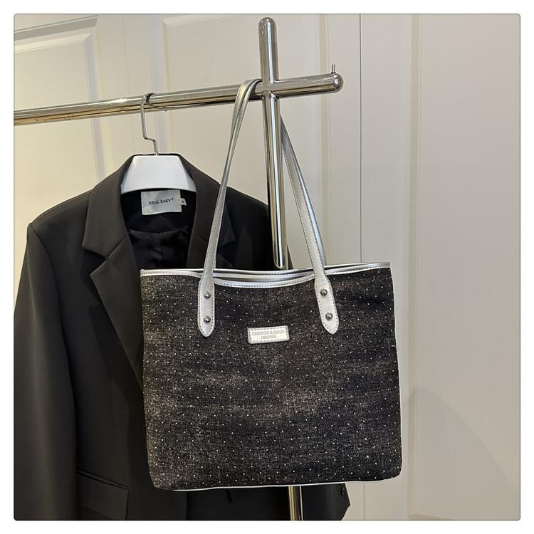 2025 лето новая джинсовая сумка через плечо с жемчужной цепочкой сумка женская для студенток колледжа для поездок на занятия в зарубежном стиле сумка-тоут чёрный