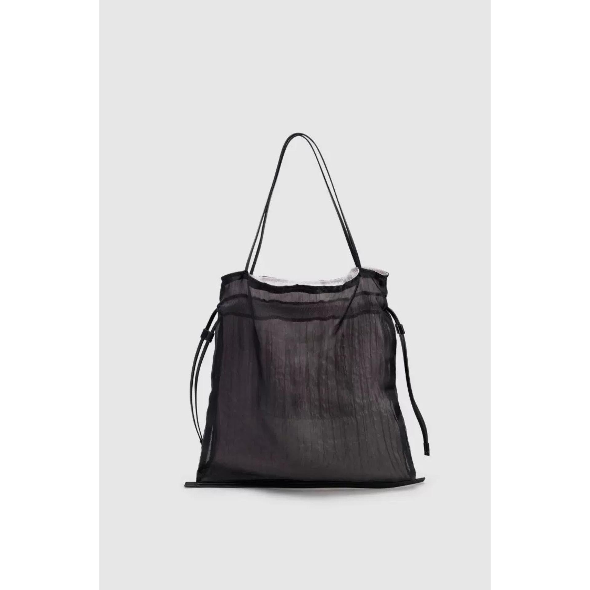 2025 лето новая мода ленивый ветер большая вместимость легкая женская легкая сетчатая прозрачная сумка-тоут на шнурке чёрный