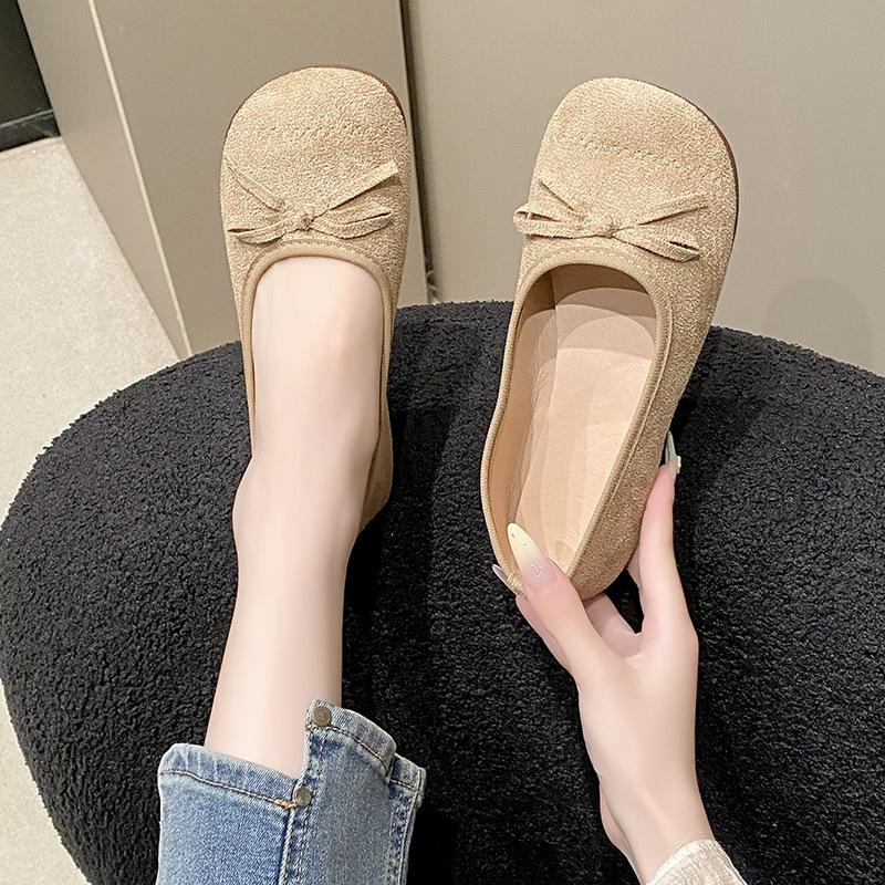 2025 лето новые ретро нежные балетки с бантом с мелким вырезом туфли-одиночки большого размера мягкая подошва туфли-бини женские 40 хаки
