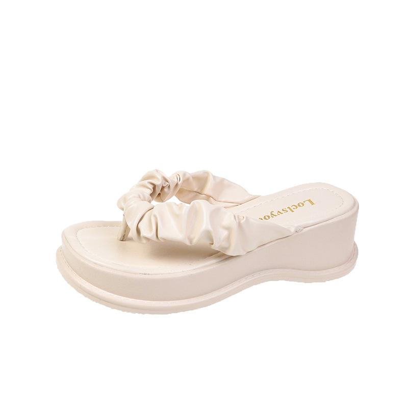 2025 лето новые толстые подошвы верхняя одежда носок женские тапочки модные мятые шлепанцы носить пляжные сандалии 35 бежевый