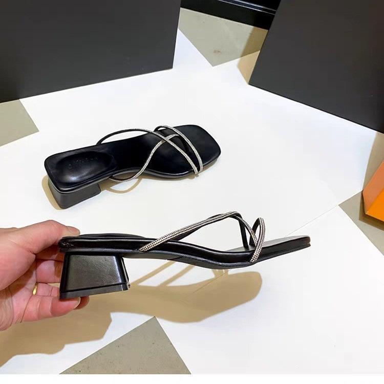 2025 лето новый французский милый и нежный стразы универсальный толстый каблук темперамент сандалии с перемычкой на большом пальце высокий каблук-слово крутые тапочки женские 40