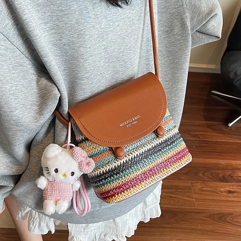 2025 модная женская сумка через плечо с цветными блоками, новая летняя тканая соломенная сумочка, милая шикарная плетеная сумка в стиле бохо