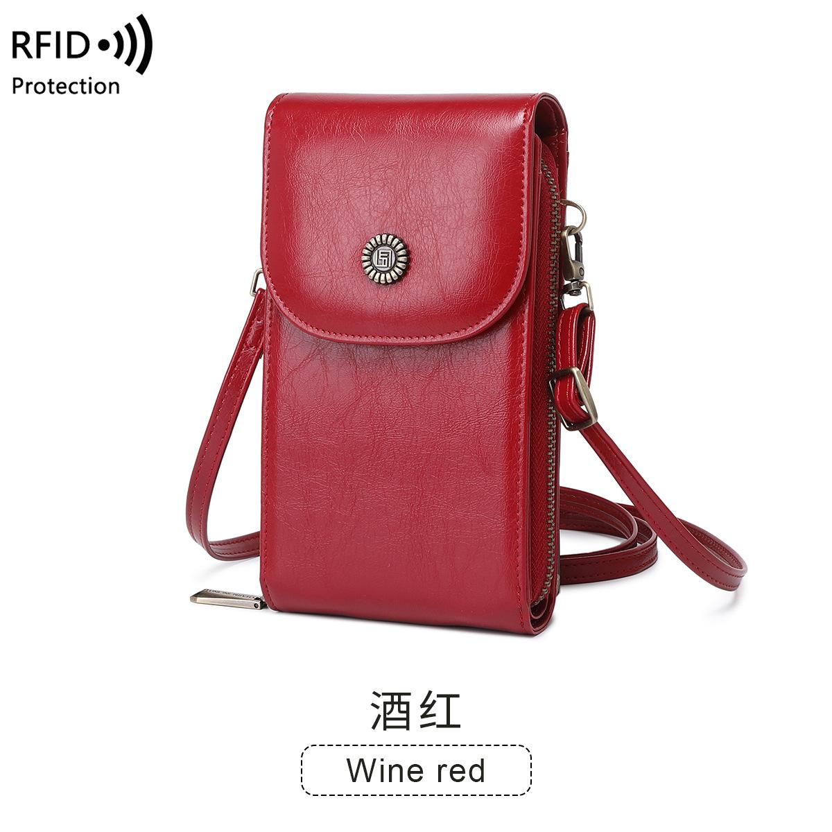 2025 новая антимагнитная сумка для мобильного телефона, ретро сумка для мобильного телефона из масляной вощеной кожи, универсальная женская сумка через плечо бордовый