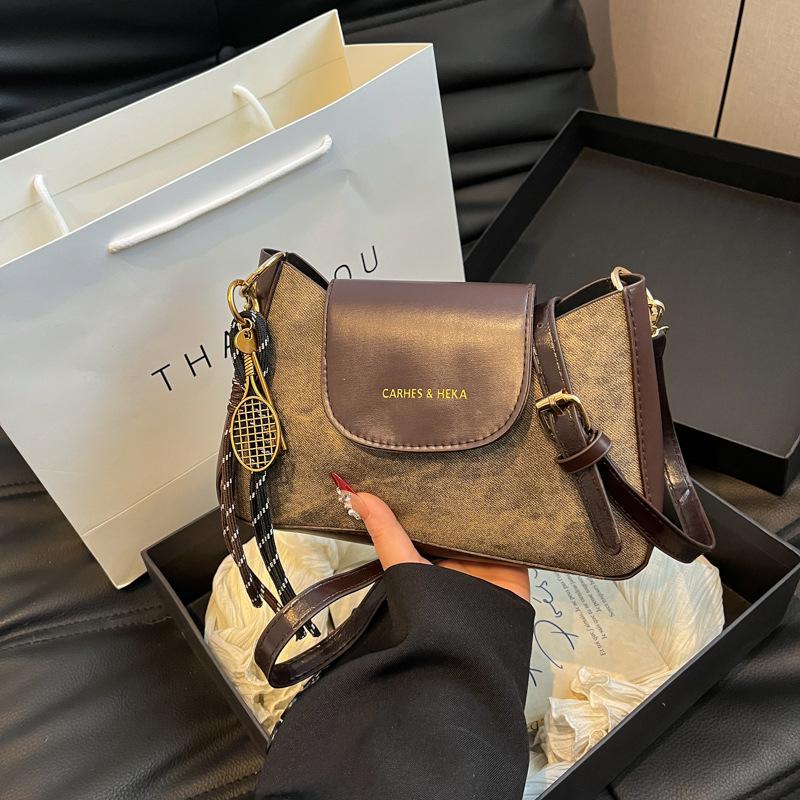 2025 новая высококачественная сумка подмышку женская модная замшевая сумка через плечо, сумка-мессенджер, универсальная ретро маленькая квадратная сумка Without pendant