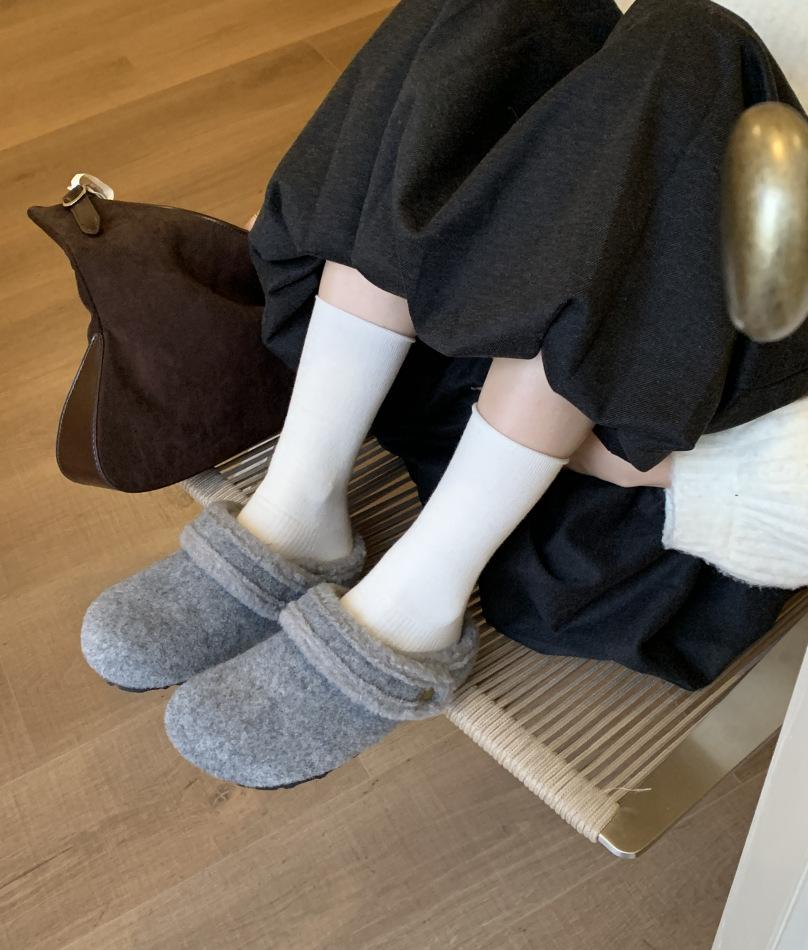2025 новая корейская версия осенне-зимняя мода универсальные нескользящие плюшевые туфли на толстой подошве пушистые тапочки с закрытым мыском женская обувь 39 светло-серый