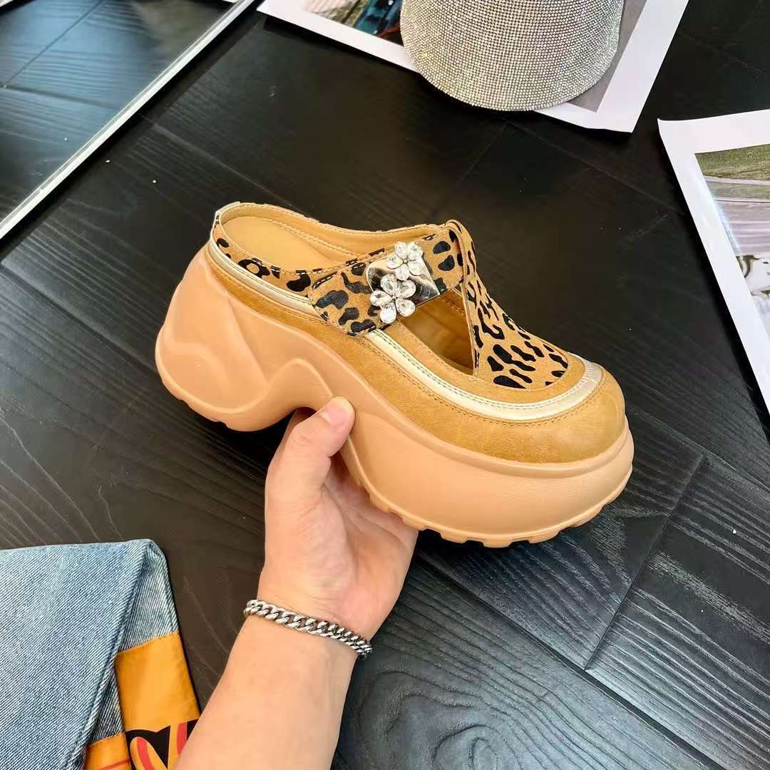 2025 новая летняя повседневная мода маффин женская обувь платформа увеличивающая рост шлепанцы женские ленивые сумка на голову износостойкие супермягкие 40 цветной печати леопарда