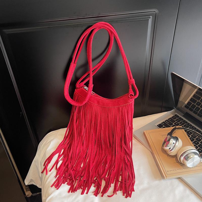 2025 новая матовая женская сумка через плечо с кисточками, модная европейская и американская кожаная бархатная ретро-модная сумка-мессенджер, женская сумка бордовый