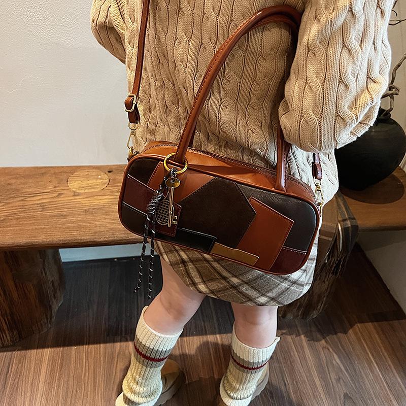 2025 новая нишевая сумка-боулинг с лоскутным дизайном, универсальная сумка-пэчворк, портативная женская сумка, модная сумка-мессенджер, маленькая квадратная сумка 29*8*13